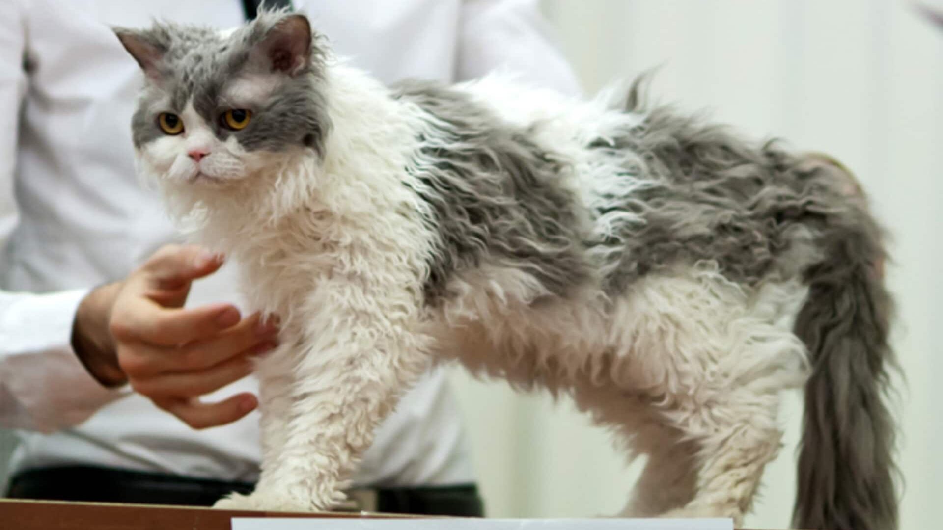 À l’âge adulte, un chat de cette race ne dépasse pas les 7 kg. Son corps est robuste, avec un squelette solide. Il possède une tête ronde, des joues proéminentes et des yeux très espacés. Son poil qui est frisé peut être court ou long. N’importe quelle couleur est admise tout comme les motifs tabby et point.